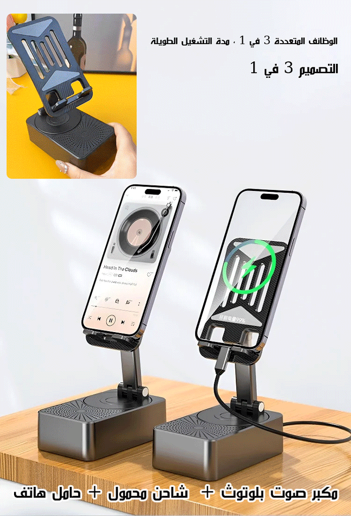 حامل هاتف ومكبر صوت و شاحن 3 في 1