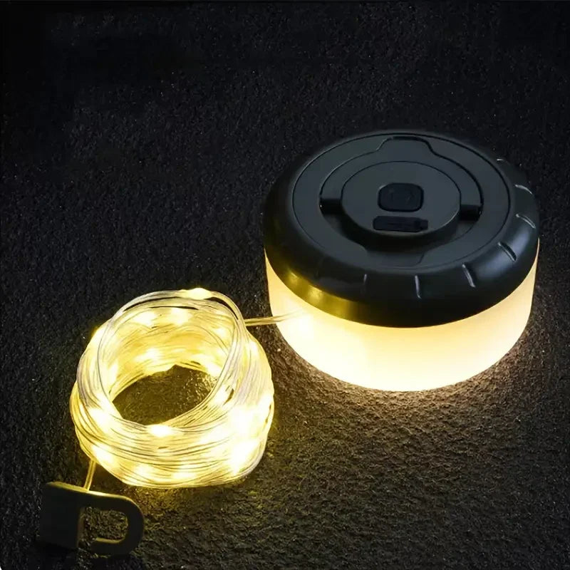 استكشف الأماكن الخارجية باستخدام حبل الإضاءة الدافئ القابل للسحب بطول 8 أمتار، مزيج مثالي من فانوس التخييم وحبل إضاءة.