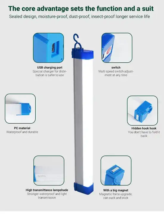 مصباح الإضاءة مزود بمغانط على الجانبين، ليتسنى لك تثبيته على أي سطح معدني، يمكنك استخدامه لإضاءة الفناء الخارجي والحديقة ومثالي للتخييم والرحلات.
