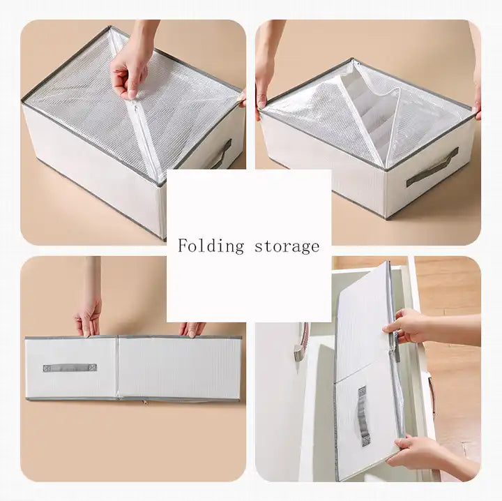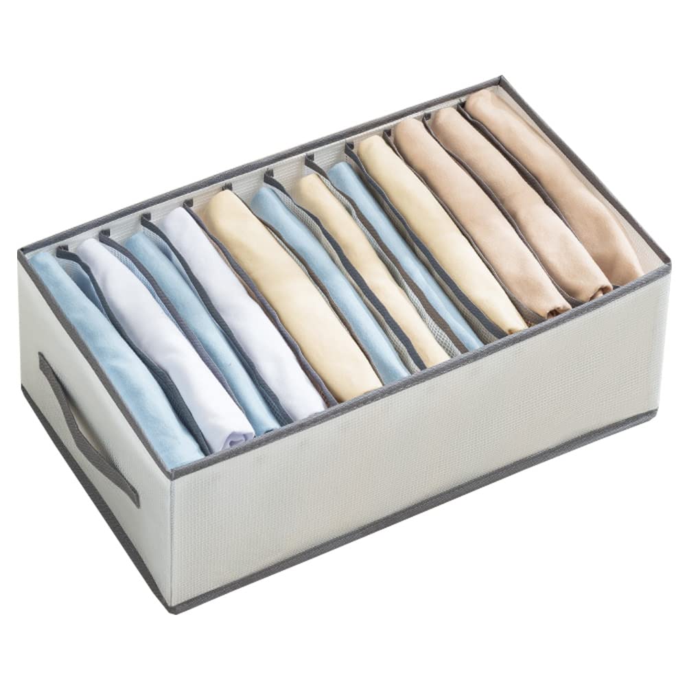 بفضل الفواصل البلاستيكية المدمجة، يتمتع هذا الصندوق بتنظيم عالي. يمكنك تكديس العديد من الملابس للحصول على أقصى استفادة من المساحة خزانتك وغرفة الملابس.
