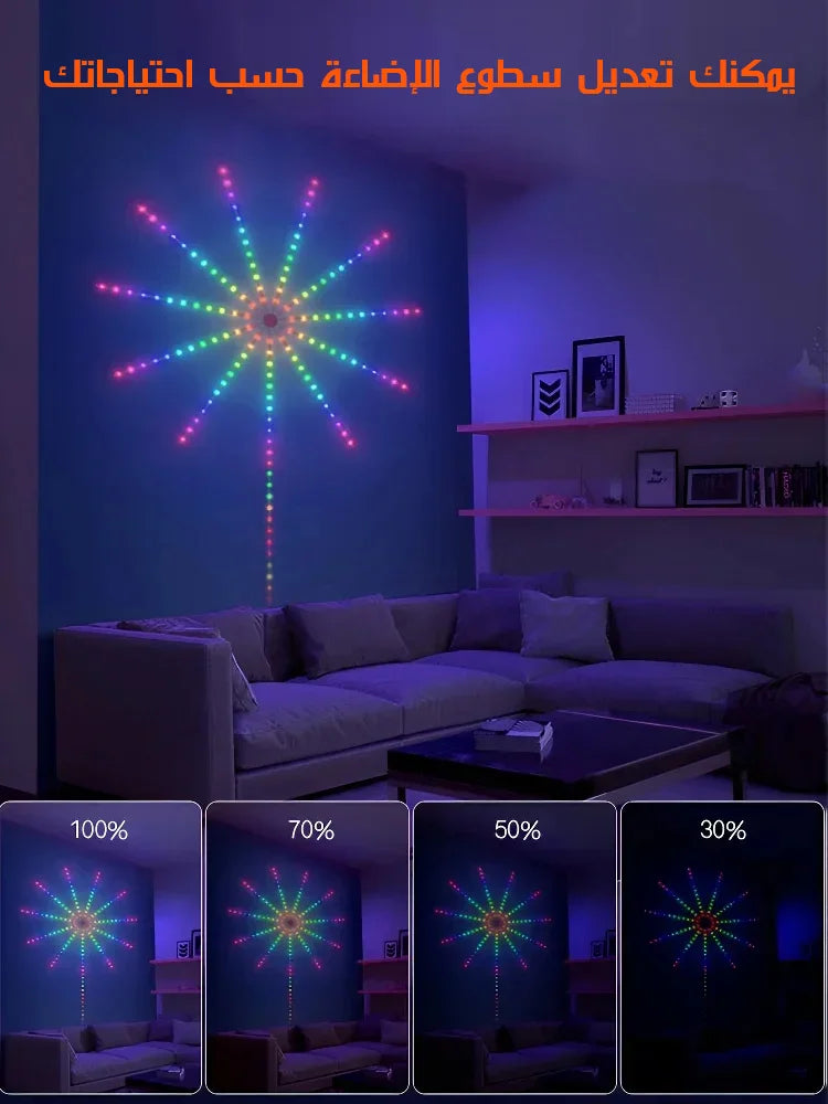 مصباح زخرفي للعام الجديد مع الأضواء الملونة على شكل الألعاب النارية